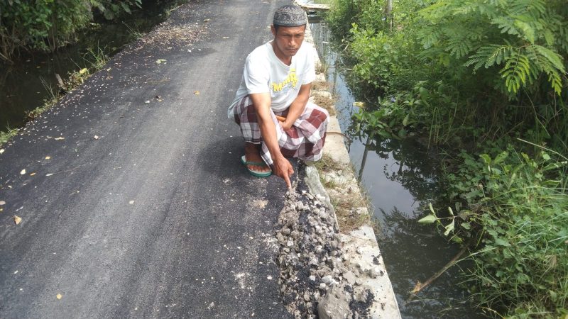 Dalam unggahan video di Facebook, warga menunjukkan bagian jalan yang sudah ambrol hanya dalam waktu singkat setelah pembangunan selesai.