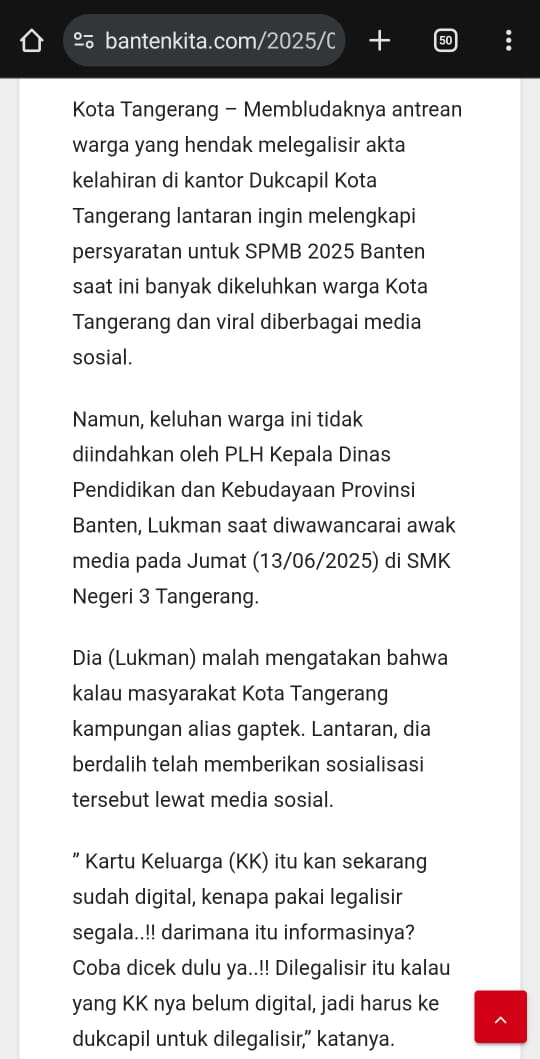 Dalam kunjungan ke SMK Negeri 3 Tangerang, saat dimintai keterangan oleh awak media tentang panjangnya antrean warga yang ingin melegalisir Kartu Keluarga (KK) untuk pendaftaran Seleksi Penerimaan Mahasiswa Baru (SPMB) 2025, Lukman malah menyindir warga dengan sebutan “kampungan” dan “enggak paham digital.”