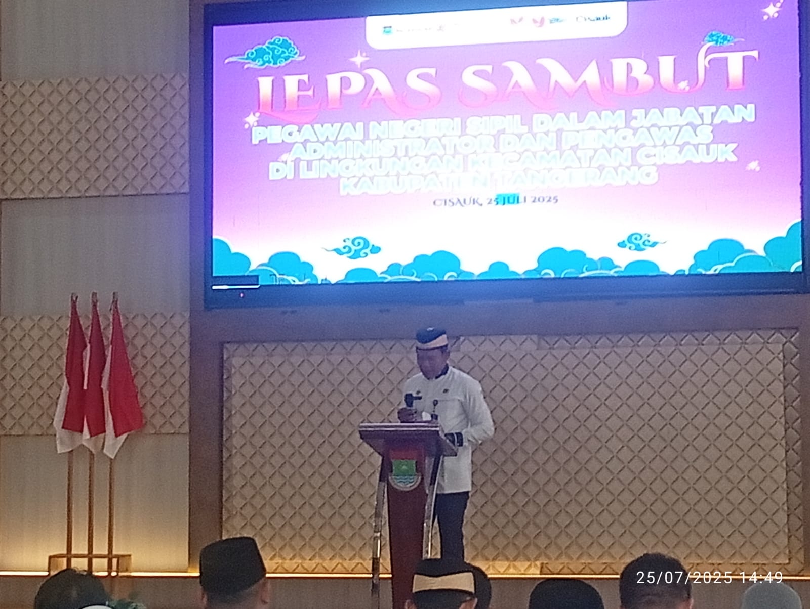 Tangerang, Dinamikanews.net – Acara lepas sambut Camat Cisauk di Aula Gedung Serba Guna (GSG) Kecamatan Cisauk pada hari Jumat (25/07/2025) pukul 14.30 wib