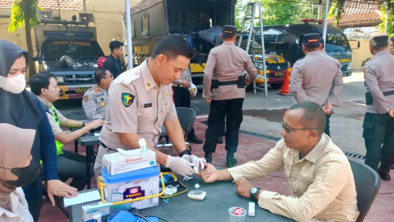 Tampak hadir mengikuti kegiatan, Kapolres Brebes AKBP Lilik Ardiansyah dan para PJU. Mereka bersama dengan anggota memanfaatkan pelayanan dan pengecekan kesehatan tersebut.