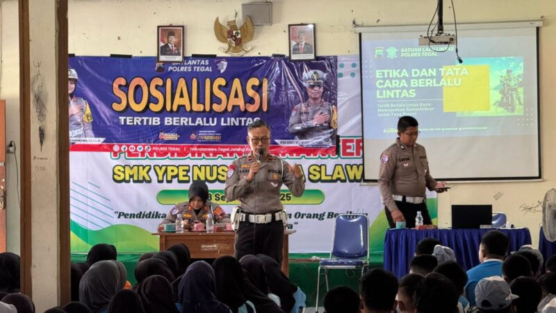 Tegal, Dinamikanews.net – Dalam upaya mewujudkan generasi muda yang sadar akan pentingnya keselamatan berlalu lintas serta memiliki karakter yang kuat dalam menolak kekerasan dan perundungan, Satuan Lalu Lintas (Satlantas) Polres Tegal menggelar kegiatan edukasi tentang Tertib Berlalu Lintas dan Anti Bullying di Aula SMK YPE Nusantara Slawi, Selasa (16/09/2025).