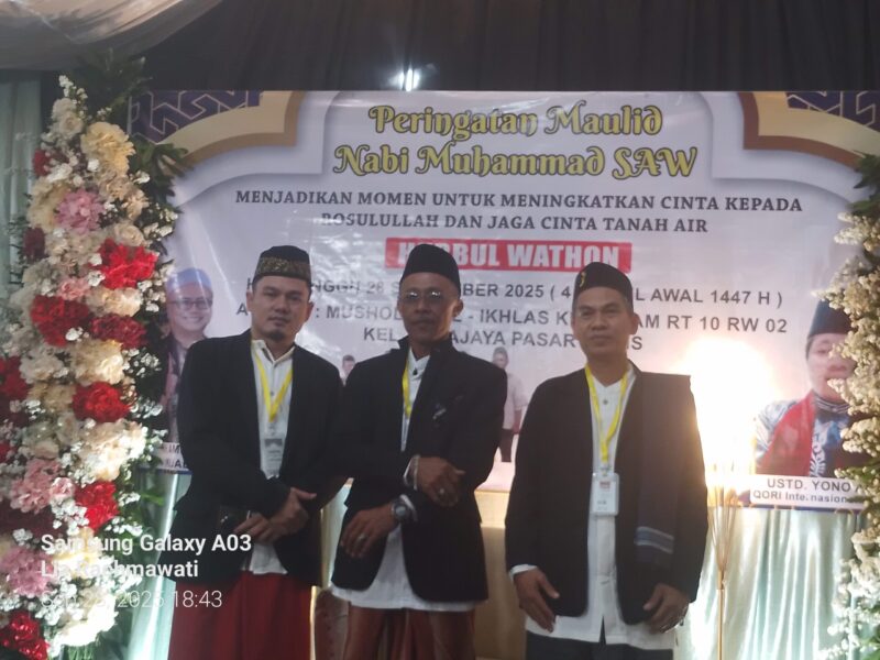 Tangerang, Dinamikanews.net – Mushola Al Ikhlas Kp. Gelam RT.10/RW.02 Kutajaya Pasar Kemis menggelar peringatan Maulid Nabi Muhammad SAW. Acara ini dihadiri oleh ratusan warga sekitar, tokoh masyarakat, serta para jamaah majelis taklim. Minggu (28/09/2025)