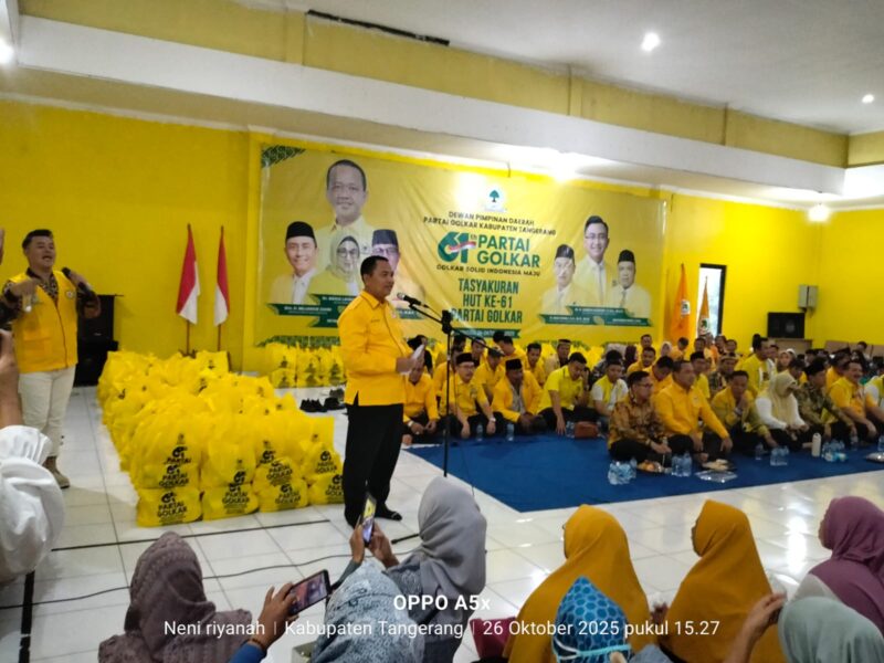 Memperingati Hari Ulang Tahun (HUT) ke-61 Partai Golkar, Dewan Pimpinan Daerah (DPD) II Partai Golkar Kabupaten Tangerang menggelar serangkaian kegiatan sosial di Tigaraksa, Minggu 26 Oktober 2025. Kegiatan tersebut merupakan bentuk kepedulian partai terhadap masyarakat sekaligus mempererat hubungan antara Golkar dan warga.