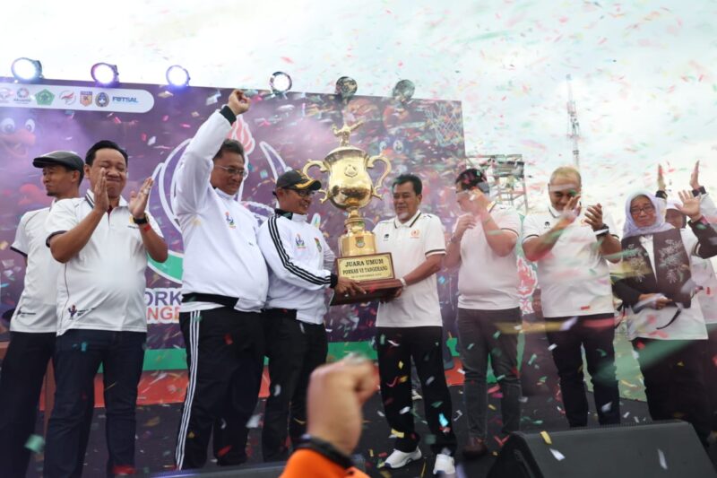 Tangerang,– Bupati Tangerang Moch. Maesyal Rasyid secara resmi menutup Pekan Olahraga Kabupaten (Porkab) Tangerang VI Tahun 2025 dengan Kecamatan Pakuhaji keluar sebagai juara umumnya. Acara tersebut digelar di Stadion FU Pasar Kemis, Sabtu (15/11/25).