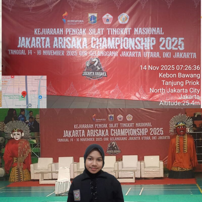 Jakarta Utara, Dinamikanews.net – Atlet muda berbakat dari SMPN 1 Parung Panjang, Kabupaten Bogor, Provinsi Jawa Barat, Raisya Rasendria Tsaniah, turut serta dalam Kejuaraan Pencak Silat Tingkat Nasional “Jakarta Arisaka Championship 2025” yang digelar di GOR Gelanggang Jakarta Utara, DKI Jakarta, pada 14–16 November 2025.