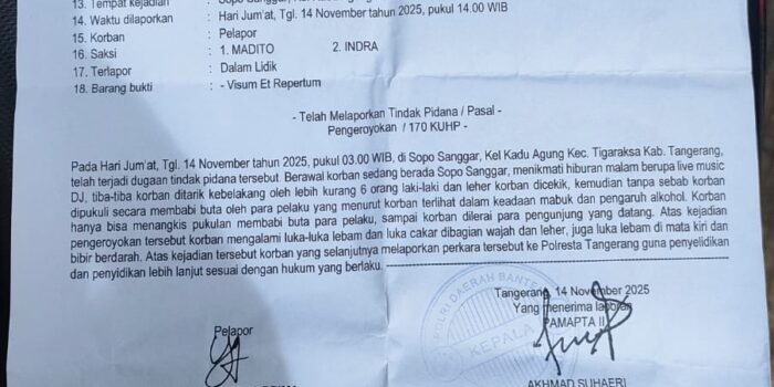Kedatangan mereka ke Unit Resmob Polresta Tangerang bertujuan untuk menanyakan secara langsung tindak lanjut laporan pengeroyokan yang terjadi di Cafe Sopo Sanggar, Tigaraksa lokasi yang dikenal rawan keributan dan berulang kali menjadi titik kejadian kekerasan.