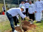 Kepala Kemenag Kabupaten Tangerang H Akhmad Jubaedi menanam pohon dihalaman Rumah Ibadah di Desa Sodong Kecamatan Tigaraksa