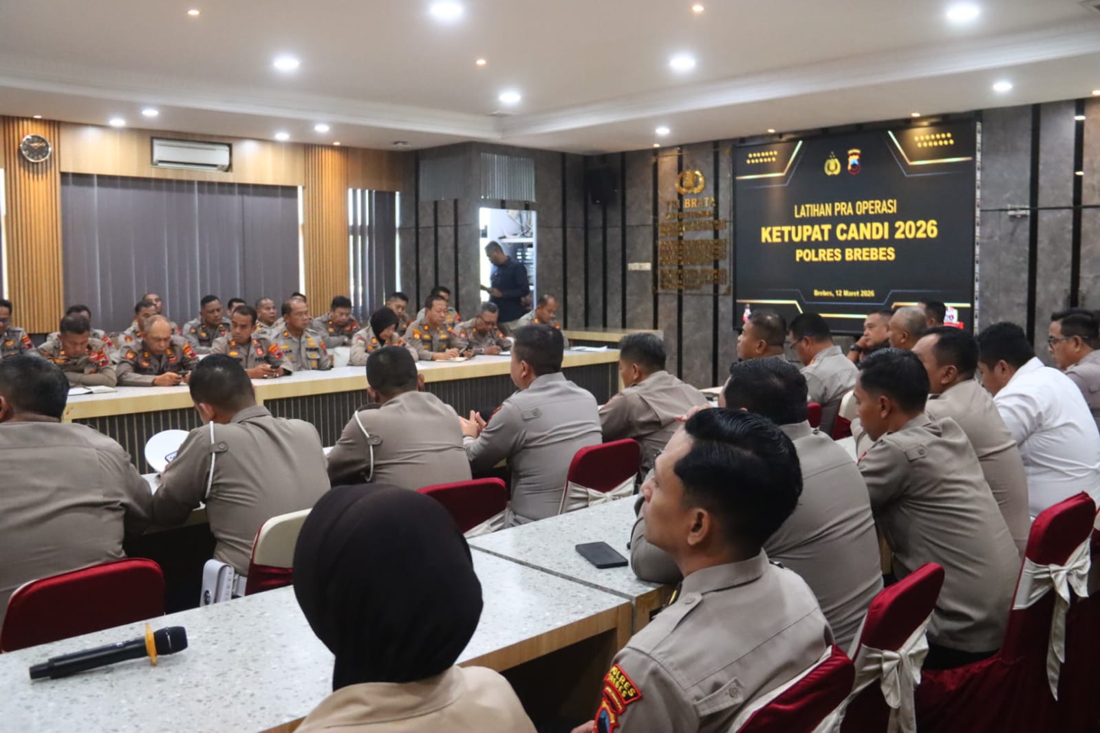 BREBES, Dinamikanews.net-Menjelang Idul Fitri 1447 H, Polres Brebes menggelar Latihan Pra Operasi (Latpraops) Ketupat Candi 2026 di Aula Tantya Sudhirajati, Kamis (12/3/2026). Latpraops ini menjadi langkah awal menyamakan persepsi dan cara bertindak seluruh personel yang akan mengamankan arus mudik-balik di wilayah hukum Polres Brebes, sekaligus menguji kesiapan sarana, prasarana, dan pola komunikasi lintas instansi.Kegiatan dipimpin Kapolres Brebes AKBP Lilik Ardiansyah, didampingi Wakapolres Kompol Purbo Adjar Waskito dan Kabag Ops Kompol Suraedi, serta dihadiri jajaran PJU, para kapolsek, dan perwira pengendali lapangan. Dalam paparannya, Kabag Ops menegaskan bahwa operasi tahun ini tidak hanya fokus pada kelancaran lalu lintas, tetapi juga pada aspek keselamatan, kecepatan respons kejadian, dan kenyamanan pemudik di rest area maupun jalur alternatif.Dalam arahannya, AKBP Lilik menekankan pentingnya penguasaan teknologi informasi dalam pelayanan publik. Dua program unggulan Polda Jateng Valet Ride dan aplikasi Sipolan diminta disosialisasikan secara masif hingga ke tingkat polsek. “Jangan sampai petugas bingung saat ditanya masyarakat. Pastikan informasinya valid dan sampaikan lewat media sosial, spanduk di titik strategis, hingga pengeras suara di pos,” tegasnya. Ia juga meminta perubahan narasi publik: istilah “kemacetan” diganti “kepadatan lalu lintas” untuk menjaga psikologi pemudik, serta menekankan disiplin, sikap humanis, dan kesiapan anggota di lapangan.Kabag Ops Kompol Suraedi memaparkan Operasi Ketupat Candi 2026 berlangsung selama 13 hari, 13–25 Maret 2026. Sebanyak 1.084 personel gabungan (Polri, TNI, Dishub, Dinkes, Satpol PP, BPBD, PMI, hingga Pramuka) akan menempati pos-pos berikut: 3 Pos Pelayanan, 1 Pos Terpadu, 1 Pos Objek Wisata, 1 Pos Valet Ride di Nasmoko Brebes (Klampok), serta 10 Pos Pengamanan di sepanjang jalur mudik, termasuk titik rawan kepadatan seperti Pejagan, Brebes Timur, dan jalur tengah. Selain itu disiapkan pula tim urai di simpul rawan, ambulans, mobil derek, dan layanan tambal ban darurat di setiap pos.Merujuk data Dinas Perhubungan, puncak arus mudik gelombang pertama diprediksi pada 14–15 Maret 2026, sedangkan puncak arus balik diperkirakan 24–25 Maret 2026. Untuk mengantisipasi lonjakan volume, Polres Brebes menyiapkan rekayasa lalu lintas situasional di jalur arteri Pantura, jalur tengah, dan selatan, termasuk pengalihan arus pada jam-jam padat serta penebalan personel di exit tol.