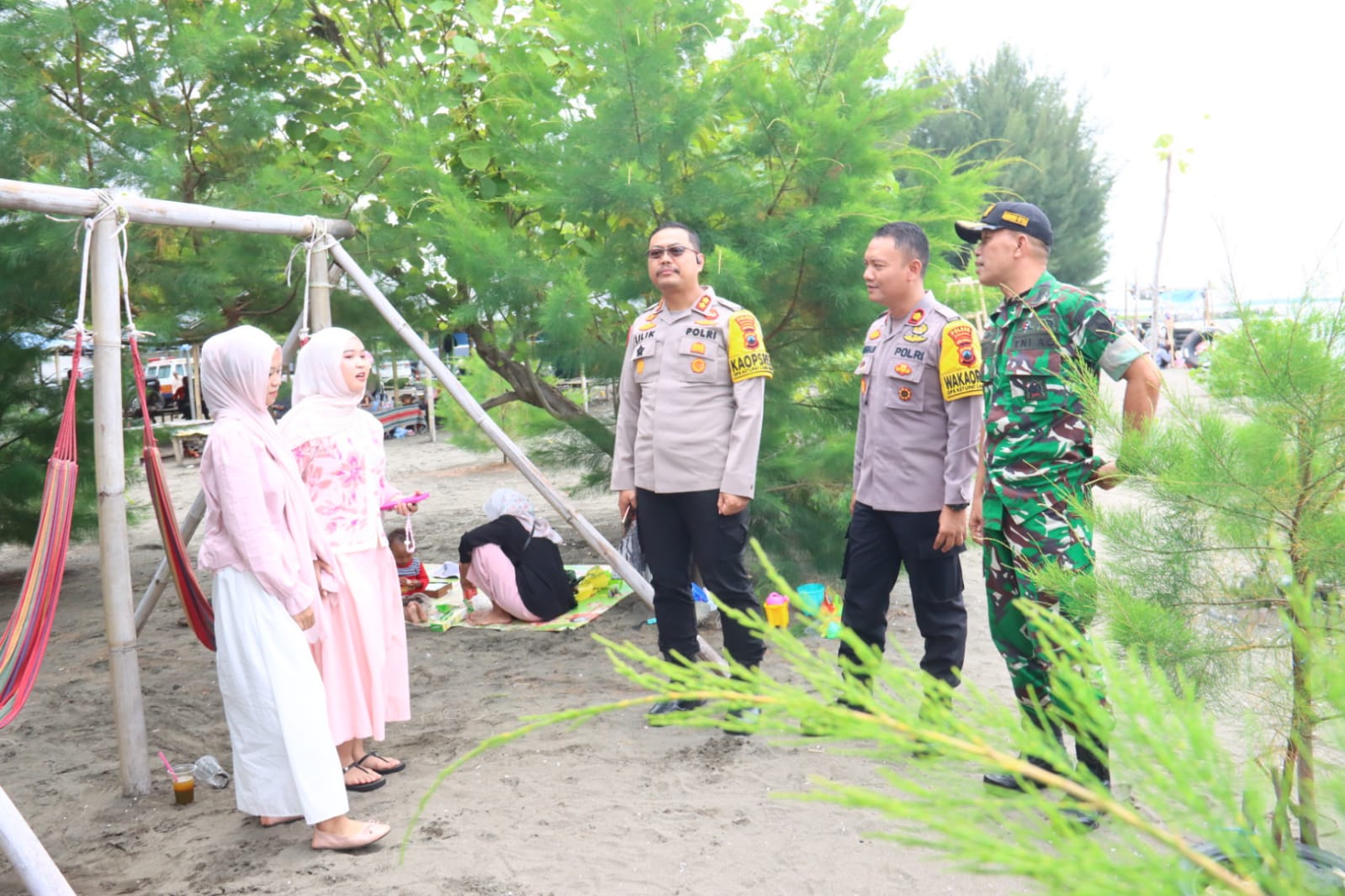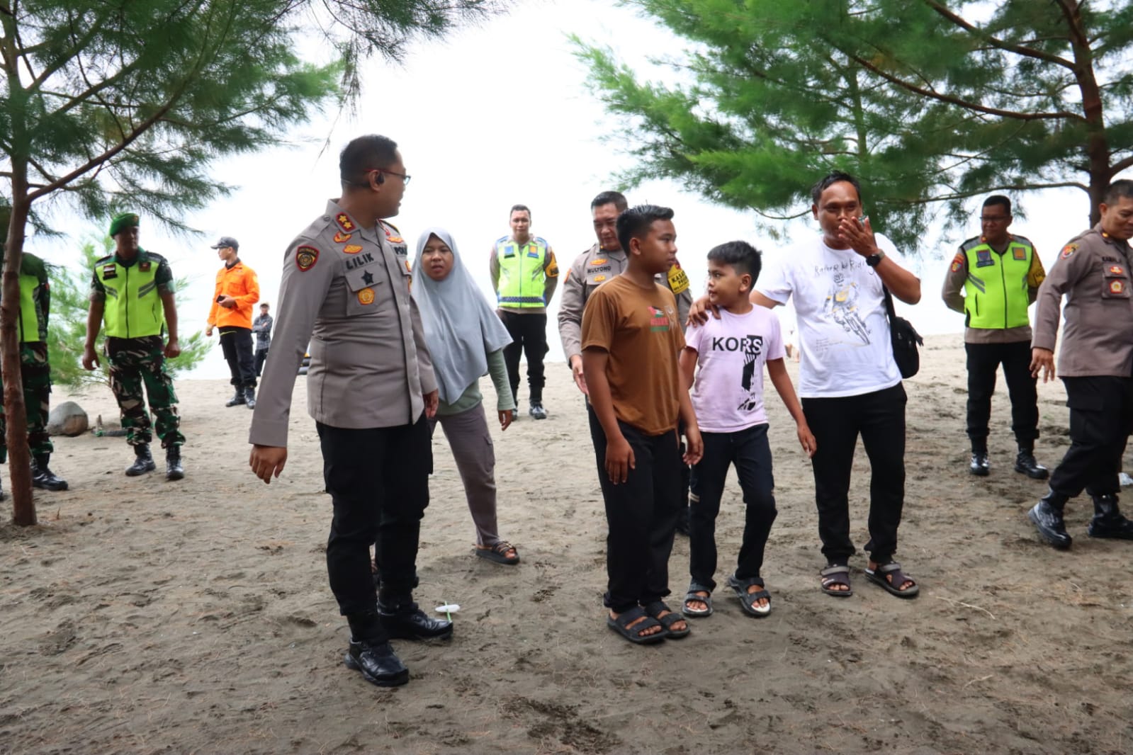 Dalam pantauannya, Kapolres tak segan turun langsung menyapa para wisatawan yang tengah menikmati liburan bersama keluarga. Dengan pendekatan yang humanis, AKBP Lilik mengingatkan para orang tua untuk memberikan pengawasan ekstra kepada anak-anak, terutama saat bermain di bibir pantai.