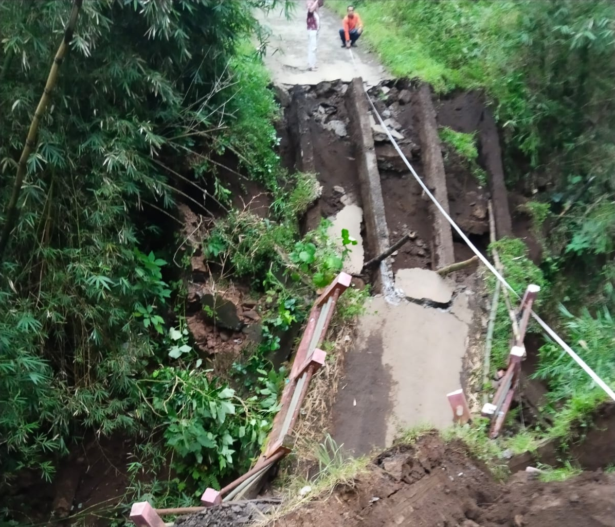 “Beberapa hari terakhir hujan terus turun dengan intensitas tinggi di wilayah ini. Air sungai Kalibuntu meluap deras dan menggerus bagian bawah jembatan. Awalnya hanya muncul lubang kecil, namun tak lama kemudian runtuh seluruhnya,” ungkap Daryono.