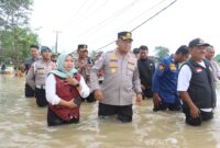 Kapolresta Tangerang Kombes Pol Andi Muhammad Indra Waspada Amirullah meninjau lokasi banjir yang merendam Perumahan Taman Cikande, Kecamatan Jayanti, Kabupaten Tangerang, Rabu (14/1/2026). Untuk…